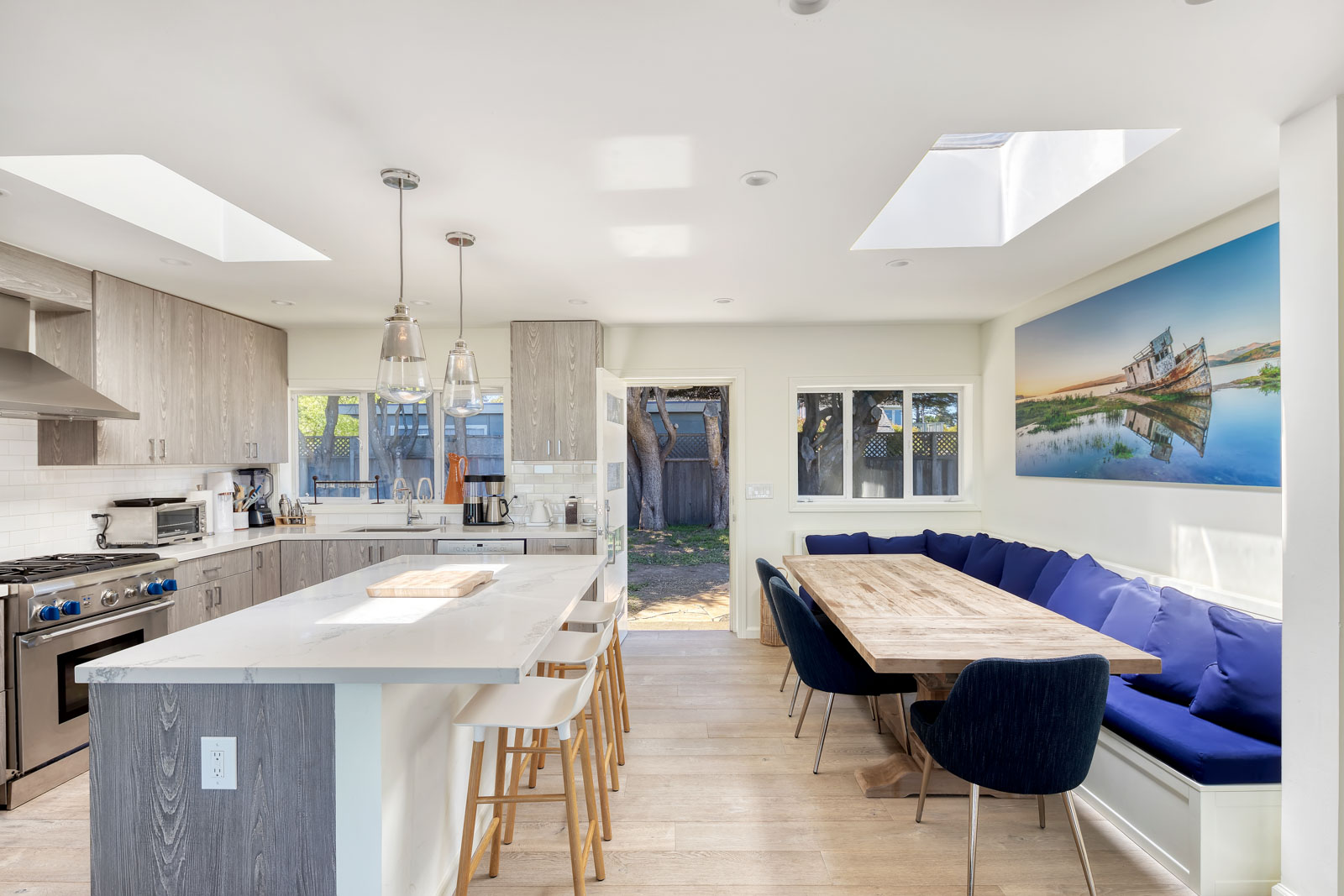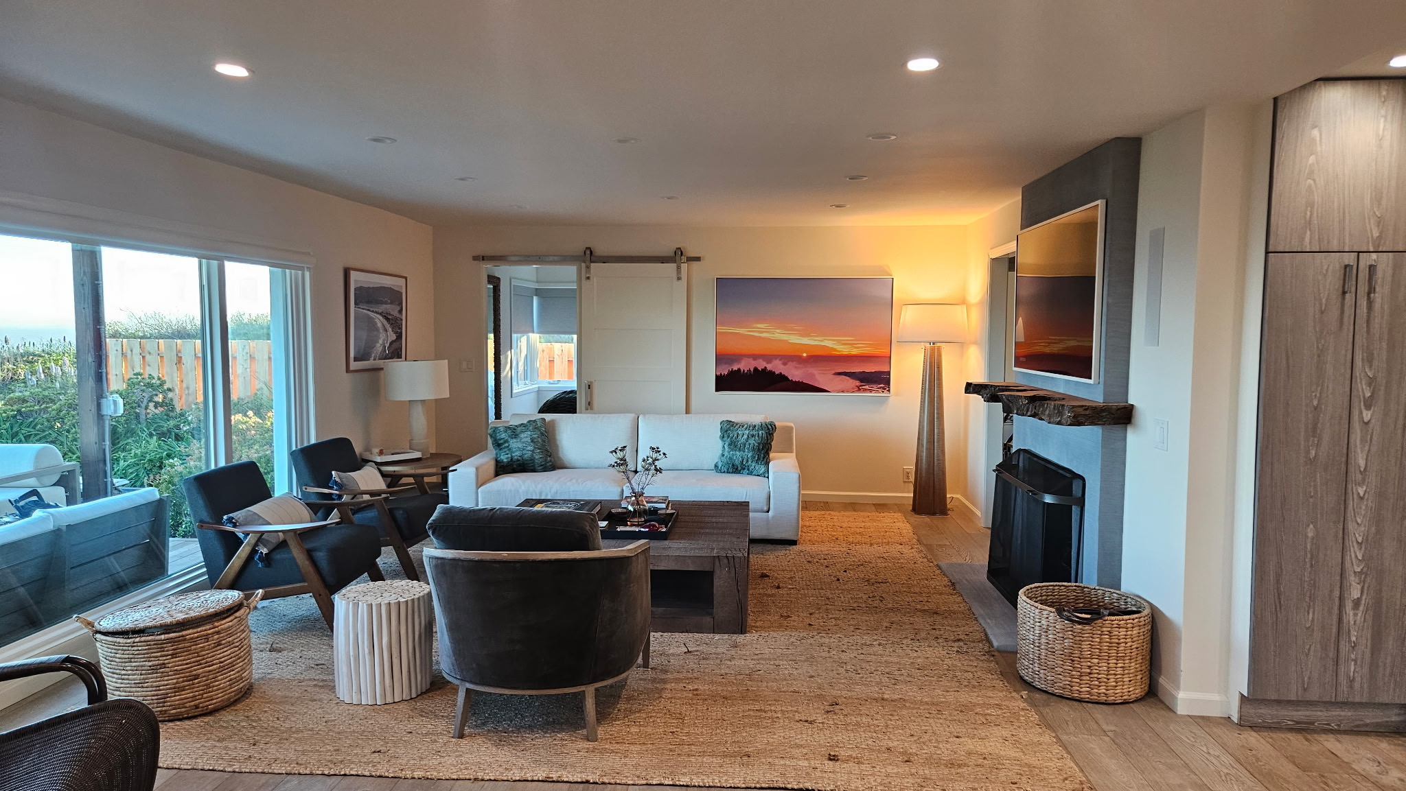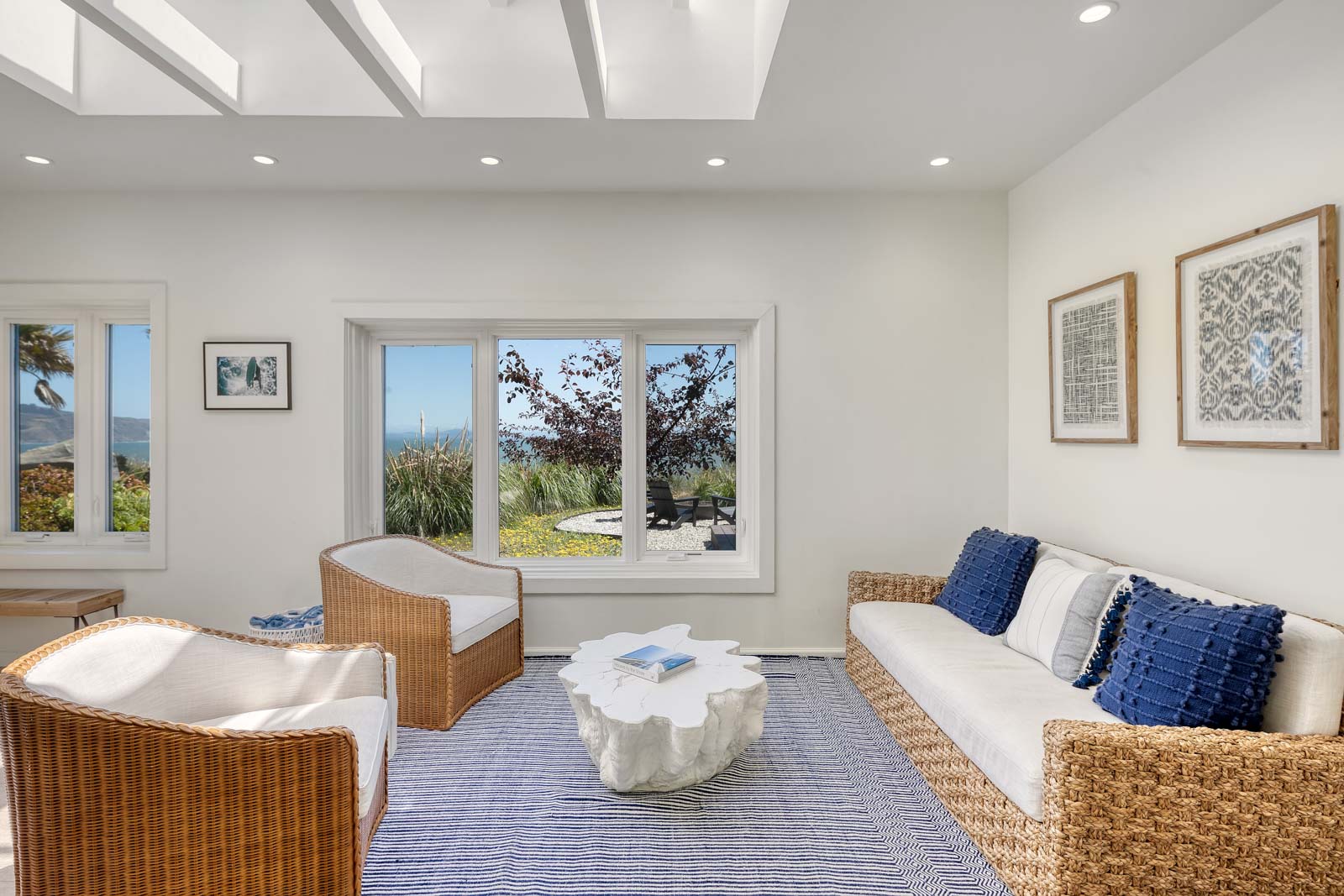 Kick back and relax in this private 4-bedroom home situated right on the ocean. You'll enjoy jaw-dropping 180-degree views of the Pacific, Stinson Beach, Mt. Tam, and even San Francisco in the distance. Recently remodeled with an open layout and high end finishes. The home is decorated luxuriously with a beachy modern vibe, featuring furniture from Restoration Hardware and Serena & Lily.